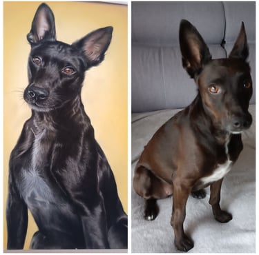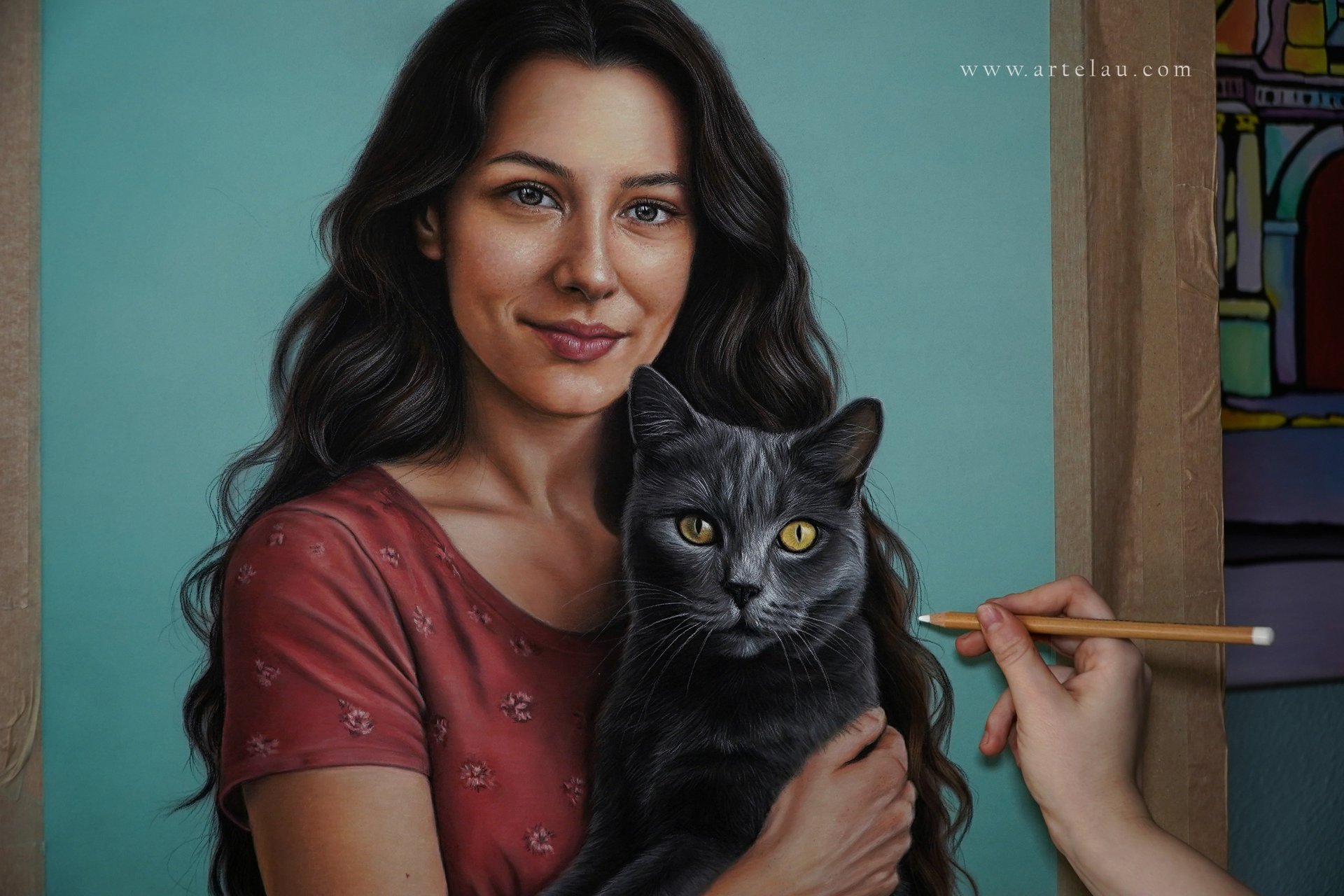 I am Laura Milán, known artistically as Artelau. A passionate painter from Madrid (Spain), I combine my training in graphic design with a deep passion for dry pastel. I specialize in realistic portraits of pets, but I also create landscapes and portraits of people.