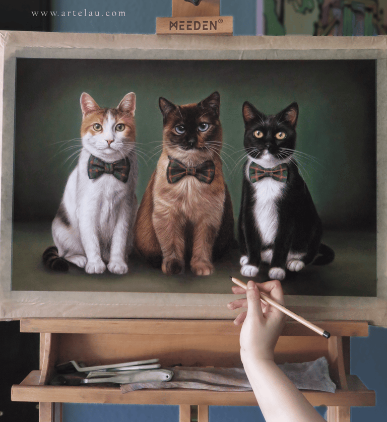 Un fondo único que añade historia y contexto a la obra: desde un paisaje natural hasta un entorno especial como la cama favorita de tu mascota o con su juguete preferido. El precio se incrementa 10-20% dependiendo de la complejidad del fondo.