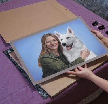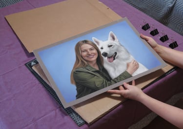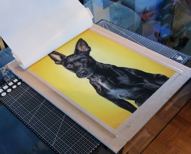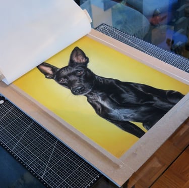 Cada obra de esta colección ha sido creada completamente a mano, con pastel seco sobre papel artístico de alta calidad.